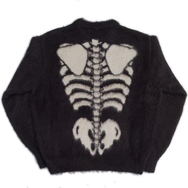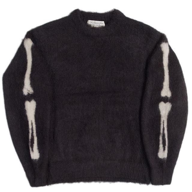 REMI RELIEF 厚手のニットに袖と背中にスカル柄が施されたクルーネックモヘアセーター